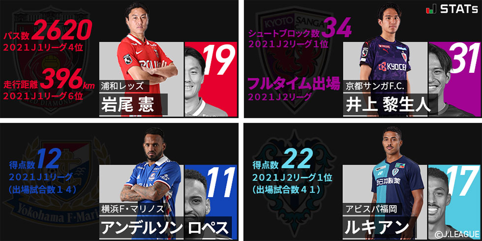 ※移籍情報は2022年2月3日時点。2021シーズンのJ1、J2、J3で出場を果たした選手で、今季新たにJ1チームへ加入した選手が対象。