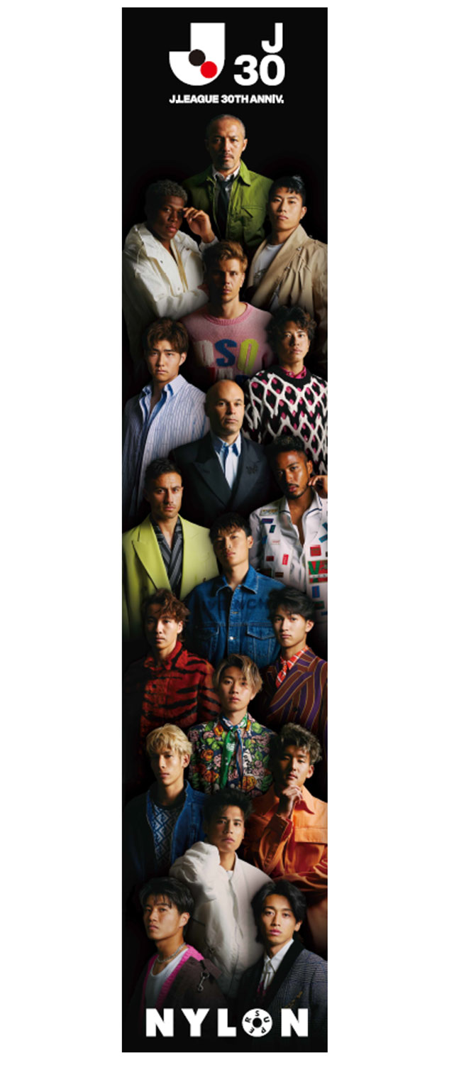 さらに、「Jリーグオフィシャルフォトライブラリー」より30年の歴史を彩る名選手たちの写真を用いたビジュアルも制作・掲出するとともに、ファッション誌『NYLON JAPAN』とのコラボレーションによる別冊『NYLON SUPER』(5月15日(月)発売予定)の表紙ビジュアルもロングバナーとなって渋谷の街に掲出されます。