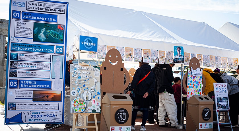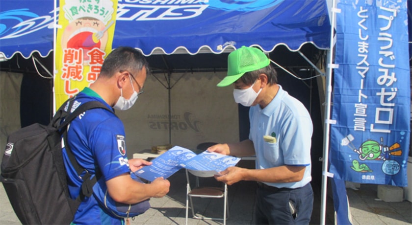 徳島県(エコみらいとくしま)と連携したプラスチックごみ削減啓発ブースにおいて、深刻な海洋汚染を招くプラスチックごみ問題について来場者に認識していただくとともに、「プラごみゼロ」とくしまスマート宣言の登録を推進する。