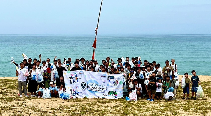 「環境月間」である毎年6月に、「ステハジ」プロジェクトの”体験”を目的として、パートナー企業や福岡市環境局と共に、海ノ中道青少年海の家にてマイクロプラスチックをざるを使って回収する「プラ干狩り」ビーチクリーン活動や、回収したプラスチックごみを活用した「アート体験イベント」を開催しております。
