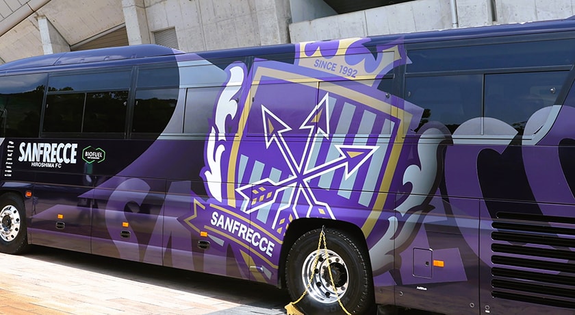 サンフレッチェ広島では選手移動用バスで生物資源由来の次世代バイオ燃料を使用しています。