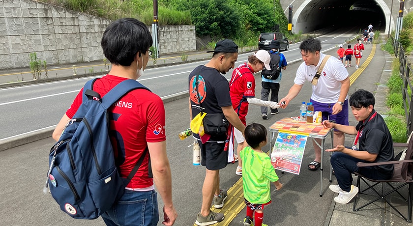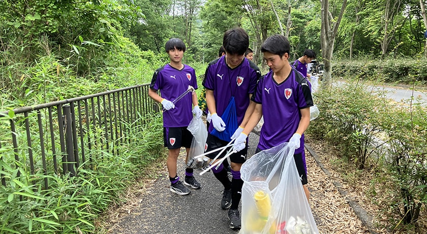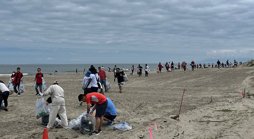 クラブの練習場がある鹿児島市喜入の海岸には絶滅危惧種であるアカウミガメが産卵に訪れます。母ガメが安全に産卵をして、孵化した子ガメが砂浜を越えて海に旅立てる環境を守るためにも、海岸に漂着するゴミを清掃しています。
