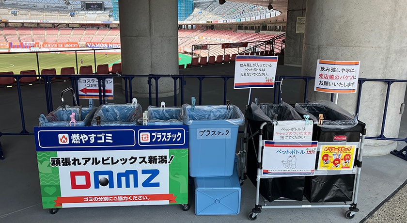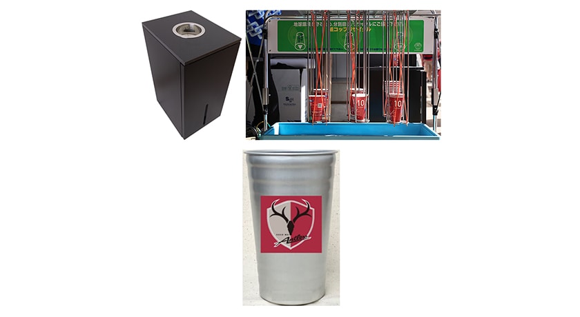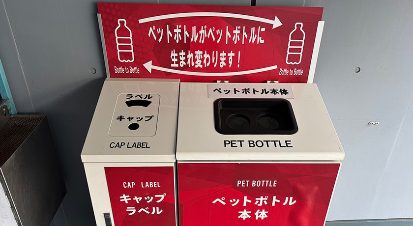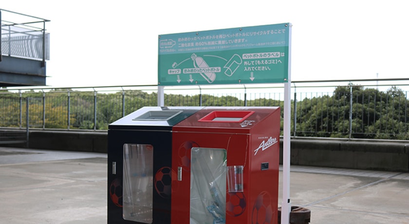 カシマスタジアムでは、使用済みペットボトルを新たなペットボトルへ再生させるための「水平リサイクルボックス」を設置しています。