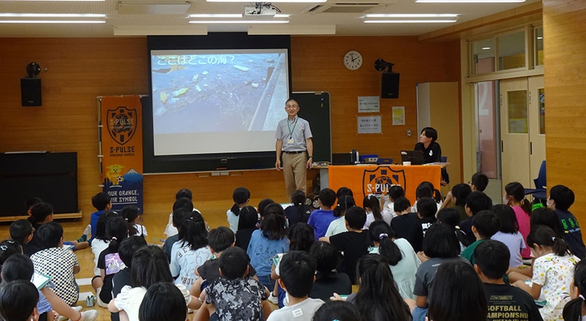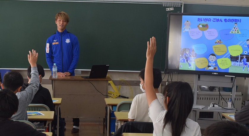 ホームタウン活動として、行政と連携し小中学校訪問時に選手による環境メッセージの放映や環境チラシの配布、ホーム試合開催時にはエコバックの配布、選手メッセージの放映、環境チラシ配布等を行い、啓発活動に取り組みます。