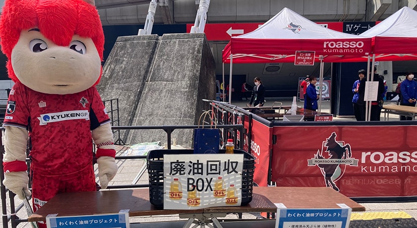 ロアッソ熊本では、2025シーズンの全ホームゲームにて廃食油の回収を協力。