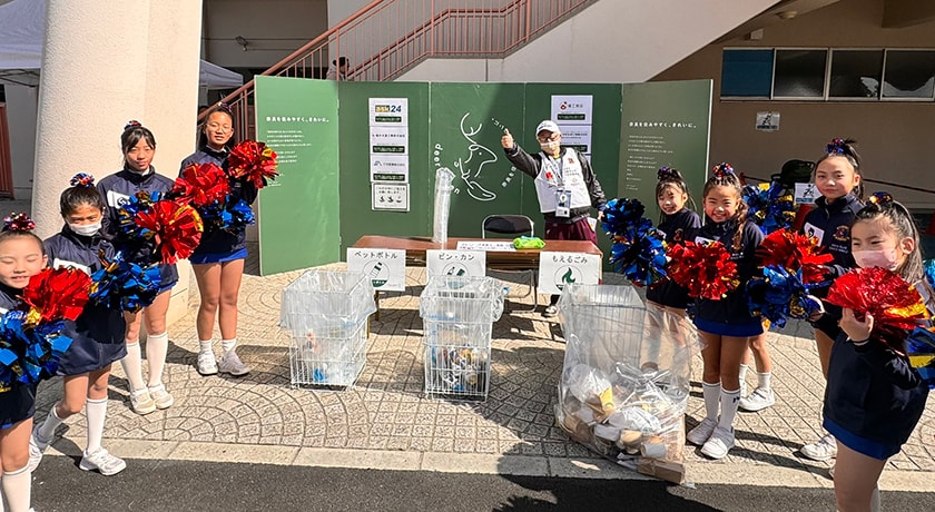 ホームゲーム開催時のペットボトルキャップ回収活動の促進とアップサイクルへ繋げる取り組み。