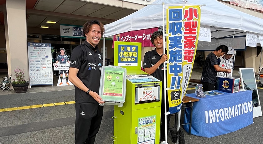 奈良市の回収事業、環境への取り組みに積極的に協力しホームゲームで使用済み小型家電等回収ボックスを設置。サポーターへ向けホームゲーム時は選手が啓発活動を実施。