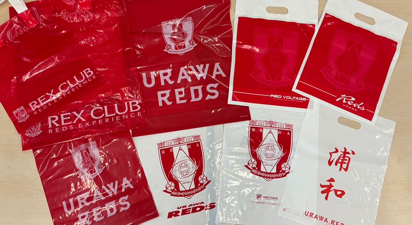 浦和レッズが発行してきたプラ製の袋類(スタジアム配布/オフィシャルショップのショッパーなど)を回収してリサイクルします。袋1枚以上でもれなくオリジナル紙袋を進呈。袋3枚につき1回抽選会に参加できます!