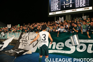 そして松田さんの背番号3を受け継ぎ、昨シーズン開幕前に「J1に昇格させる」と誓って故郷に舞い戻った田中隼磨にとっては、右ひざに大ケガを抱えながら強行出場を続け、盟友・松田さんとの約束を果たして挑む大舞台。しかも相手は一昨年まで在籍し、2010年のリーグ優勝に主力選手として貢献した名古屋だった。「個人的な感情は内に秘めて、勝つためにプレーした」と多くは語らなかったが、一時は3-1とリードしながら引き分けに終わったことで「これが自分たちの実力のなさ。J1が厳しいことも相手のストロングポイントも、キャンプからずっと言い続けながら伝わっていなかった。だから試合に勝てなかったのは自分の責任かな。マツさんも『そんなに甘くないよ』って言っていると思う。でも、チームとしては怯むことなく戦えた。今日のミスをしっかり突き詰めて、周りにも自分にも厳しく求めていきたい」と悔しさを明らかにしながら前へ進む覚悟を見せた。