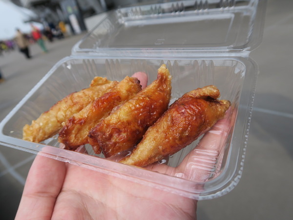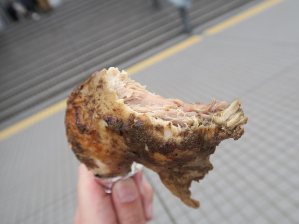 冬でもTシャツ姿で食べ歩くDEBUが気になったメニューは、この蜂蜜ジャークチキン!