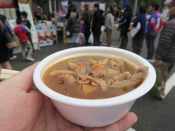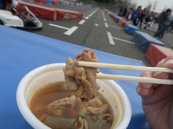 ミートテックを着込んでいても肌寒い中、具だくさんなモツ煮でホッと温まりながら…