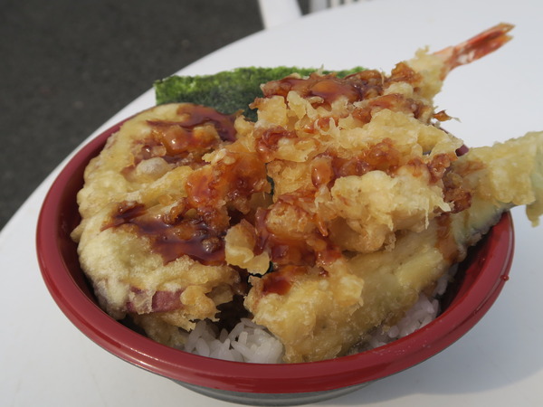 ラストのエビ天丼は、キッチンカーの中で注文を受けてから天ぷらを揚げているので…