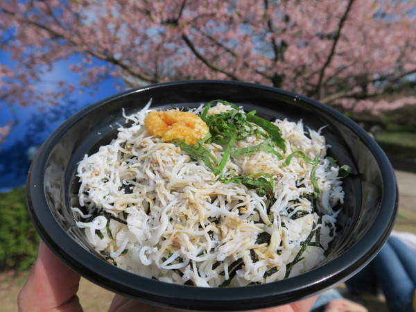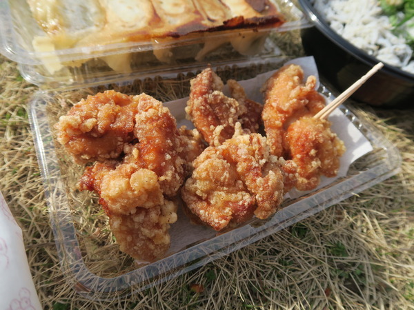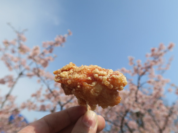 春の陽気に包まれた桜の下で、試合前の高ぶる気持ちと食欲を、最大化したのでした♪(今回のオススメは、湘南こっこからあげ、豚トロ高菜丼、釜揚げしらすピザあたり)