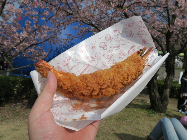 同じお店で売っていた、「特大」という文字に条件反射して即購入した海老フライに…