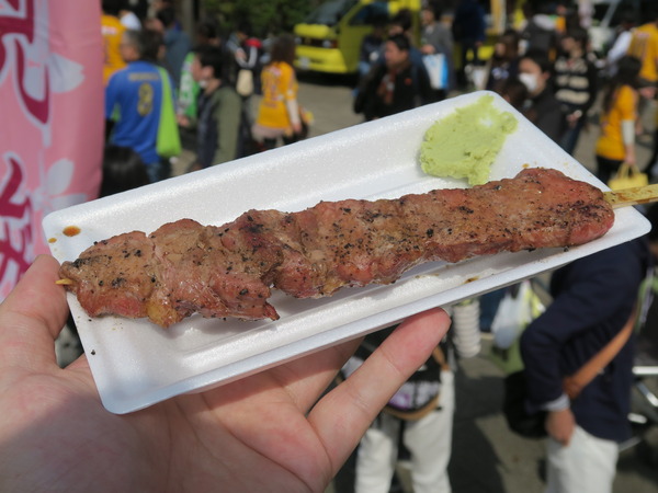 並んでいる間も痩せないよう、パワフルでスパイシーな牛サーロイン串を補給しつつ…