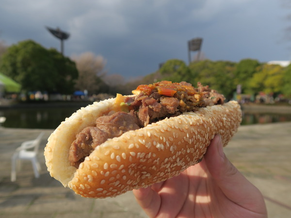 サポーターの人にコレを食べとけ!とオススメされた、チーズステーキサンドも…
