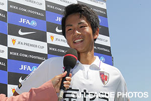 この試合でスカパー!のヒーローインタビューを受けていた選手はもう一人いる。同じく京都U-15のMF江川 慶城。一所懸命さが光った服部とは対照的に、こちらは「流暢」という言葉が似合うような堂々たる話しぶり。さわやかに言うべきことを言い切って、きちんと返す。かつての日本代表主将・宮本 恒靖氏を思い出すような、そんな語り口である。