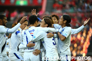 だが、彼らはそれから1週間後の11月7日に行われた明治安田生命J1リーグ 2ndステージ 第16節でサンフレッチェ広島にホームで0-2と完敗。この結果、年間勝点1位の可能性が消滅し、年間順位でもFC東京に抜かれて4位に落ちてしまう。リーグ戦で彼らに残された奪冠のチャンスは、リーグ戦で年間3位に入って明治安田生命Jリーグチャンピオンシップで勝ち上がっていくこと。最終節でFC東京が引き分け以下に終わることが条件という他力本願ながら、「人事を尽くして天命を待つ」とばかりにモンテディオ山形相手の最終節で意地を見せた。スコアレスの状態が続きながら、61分からの6分間で立て続けに4ゴールを奪って勝利。そこにFC東京がサガン鳥栖に引き分けたという報が入り、G大阪が土壇場でチャンピオンシップ出場権を獲得することに成功した。
