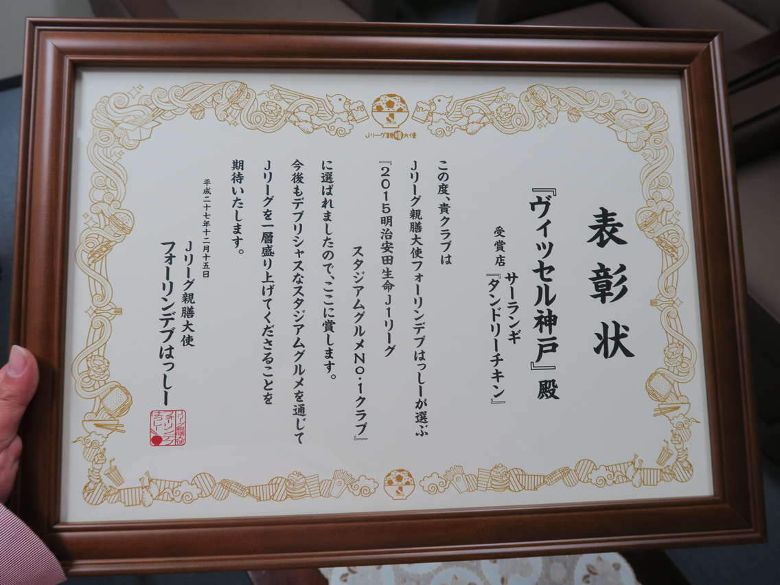 「ヴィッセル神戸」に決定! そして受賞店は「サーランギ」のタンドリーチキンです!