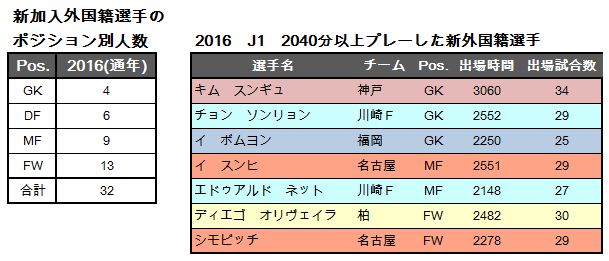 ポジション別の人数とは反比例し、GKは4人中3人と多く、FWは13人中2人のみという結果に。初年度で爆発的な結果を残せるストライカーは希少ということか。対照的にGKは守護神としての地位を確立しやすいといえそうだ。