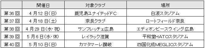 ※第41回以降の日程については決定次第、特設サイト(https://www.jleague.jp/special/Jsmilefootballtour/)にてお知らせいたします
