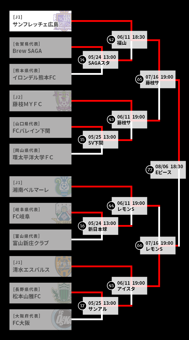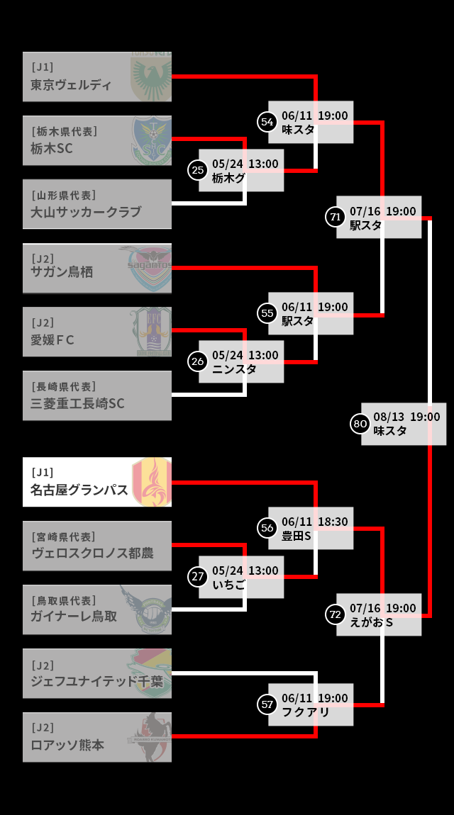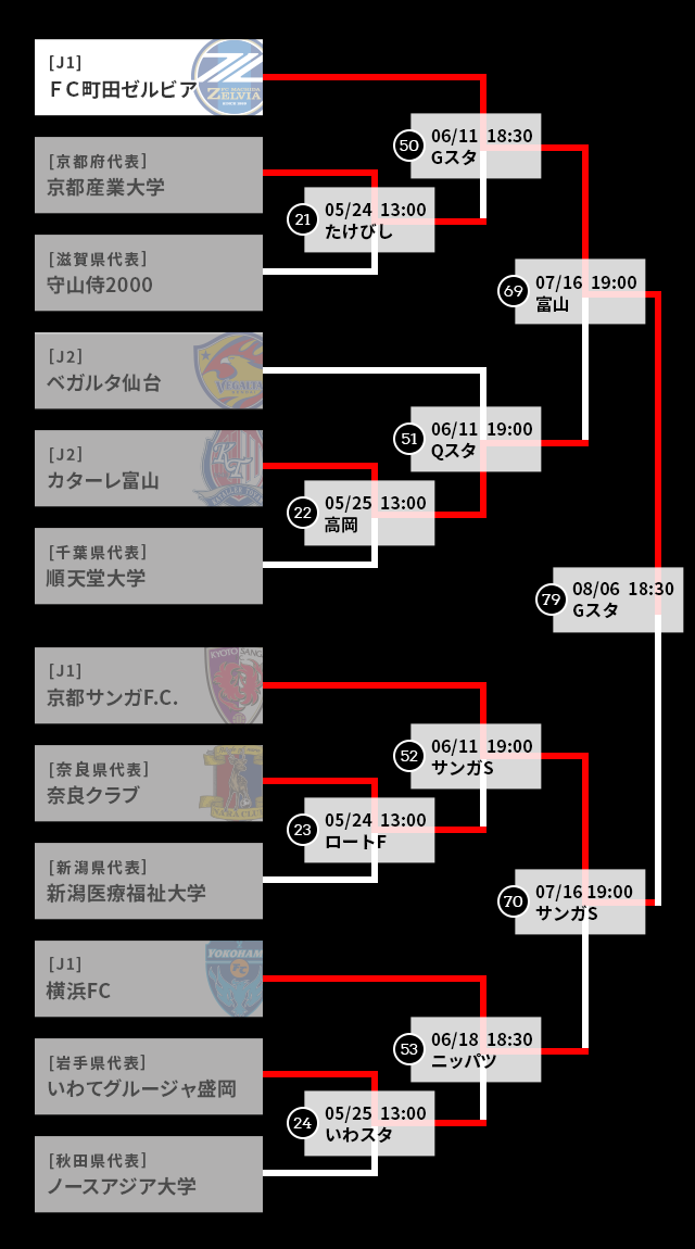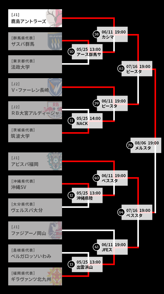更新情報 2025/11/22(土)NEW!! ニュース 神戸を下した町田が悲願の初優勝!クラブ史上初となるタイトルを獲得【サマリー:決勝】 天皇杯の決勝が22日に国立競技場で行われ、神戸を下した町田が初優勝を飾った。 2025/11/16(日) ニュース 激闘を制した町田と神戸が決勝進出!決勝は11月22日国立競技場で開催【サマリー:準決勝】 2025/8/27(水) ニュース 3発快勝の町田が鹿島を撃破!神戸は相模原とのPK戦を制し準決勝進出【サマリー:準々決勝】 ページの先頭へ戻る トーナメント表 ページの先頭へ戻る Tweet