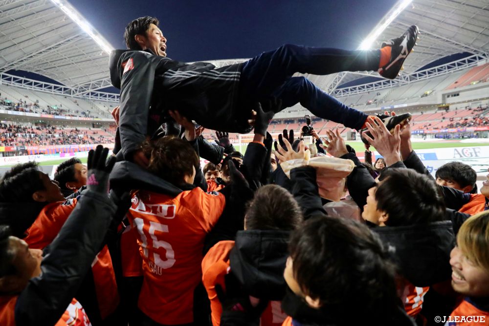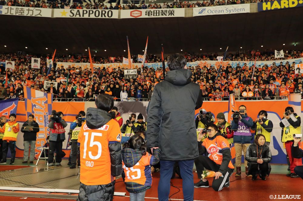 最後はファジアーノ岡山のファン感謝デーで、晴れやかな笑顔で挨拶しました!