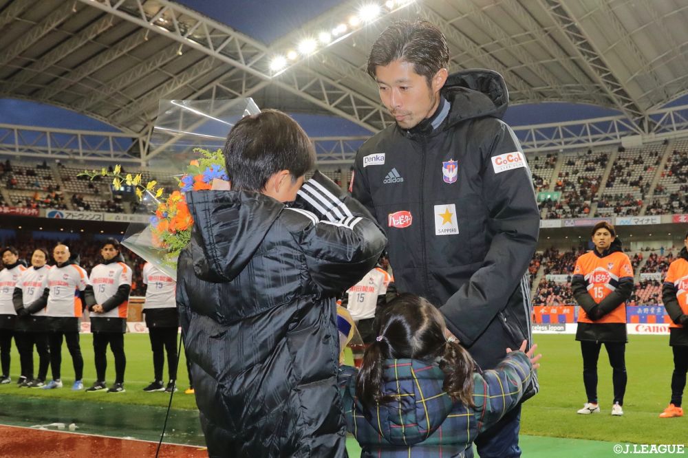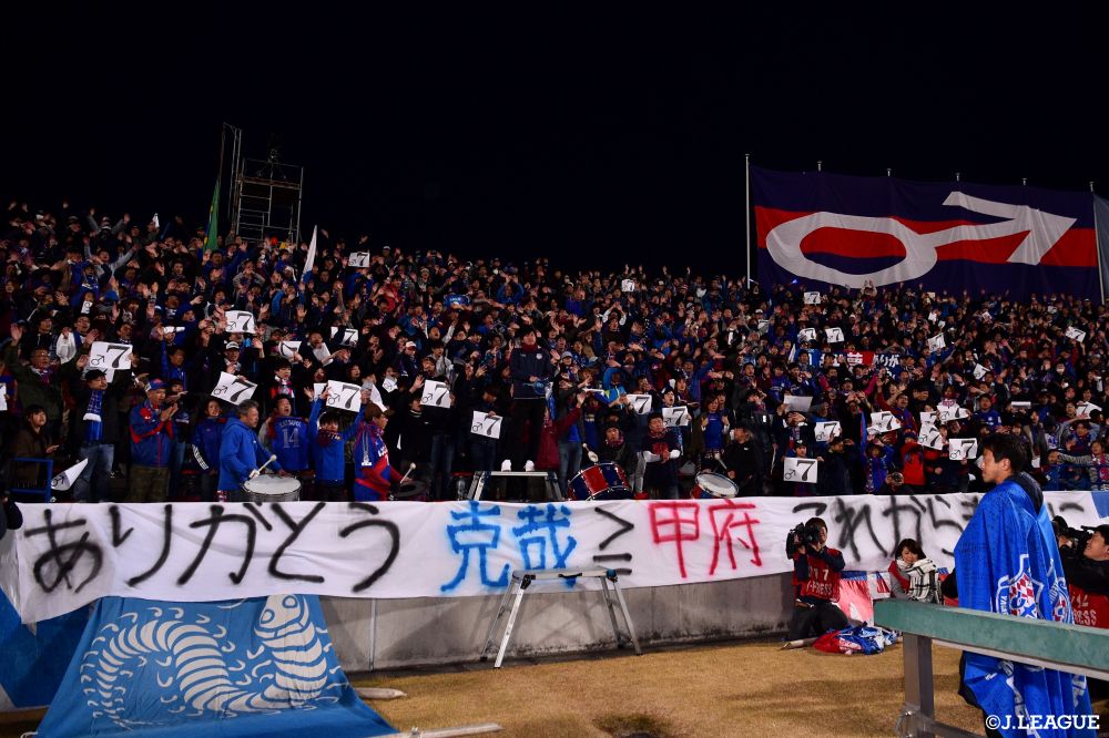 なんと東京Vサポーターから感謝の横断幕と花束が用意されていました♪