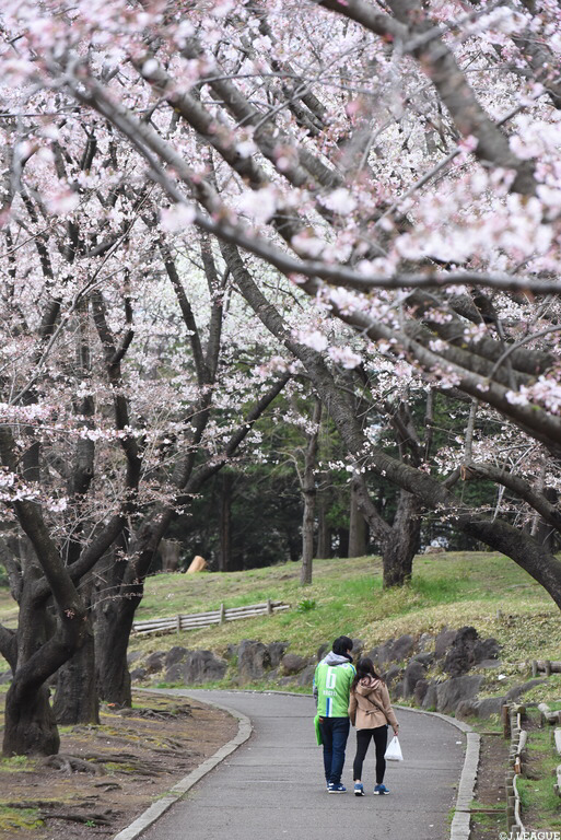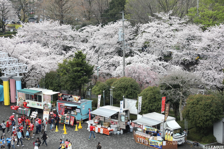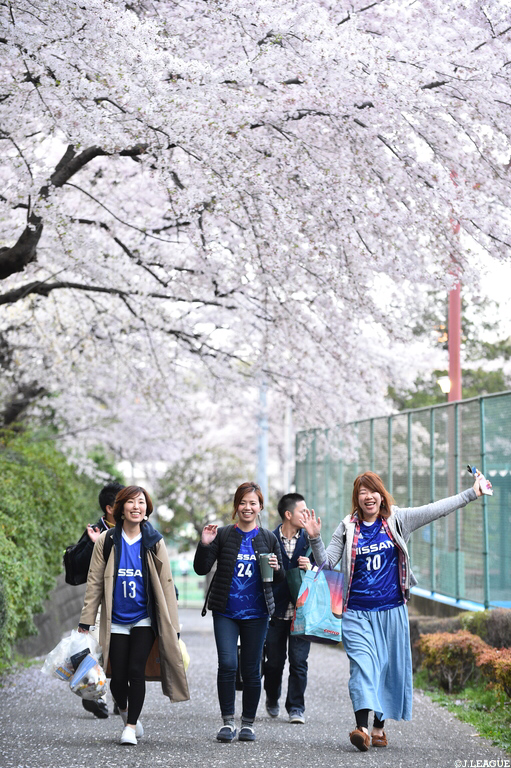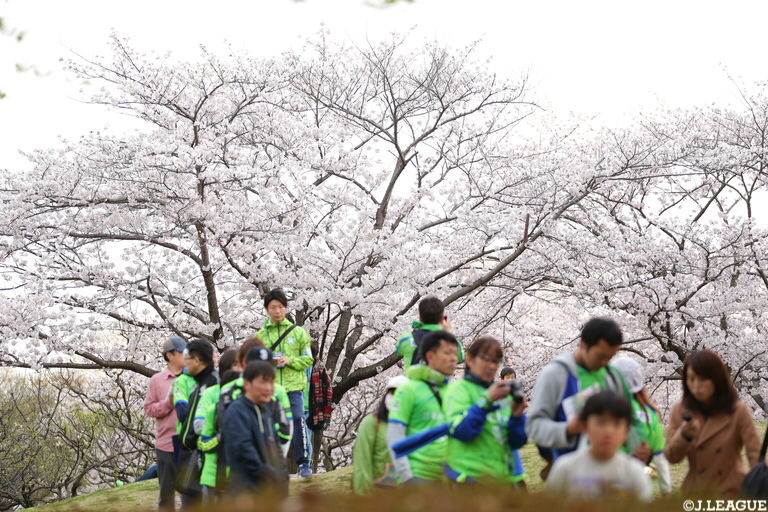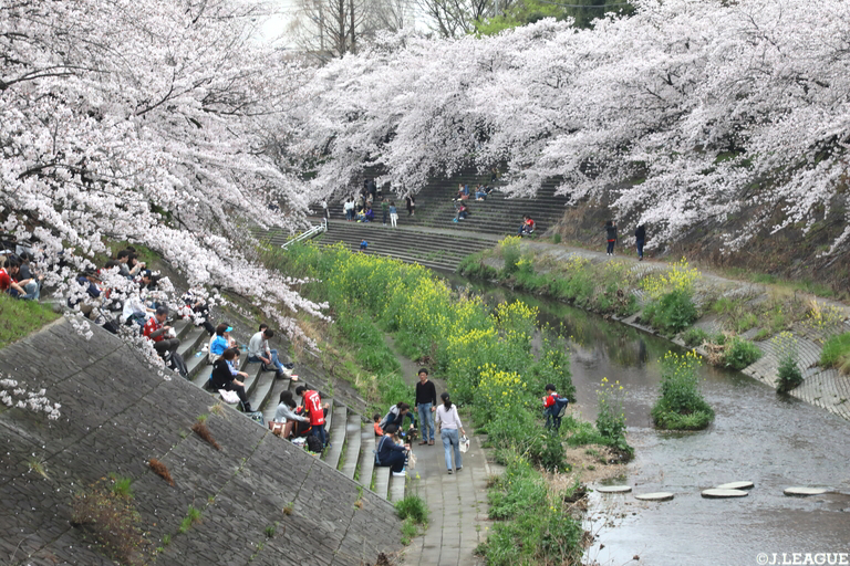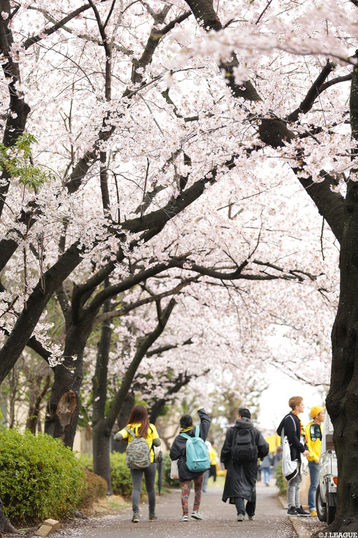 名古屋グランパスのホームスタジアムであるパロマ瑞穂スタジアムの隣には、名古屋市随一の桜の名所で「さくら名所100選」にも選ばれている山崎川が流れています。