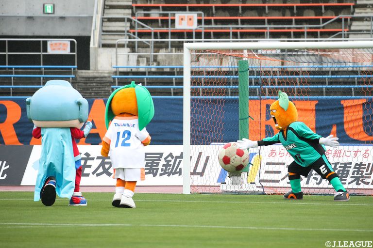 マスコット11体vsマスコット11体で行われた「ゆるキャラサッカー」