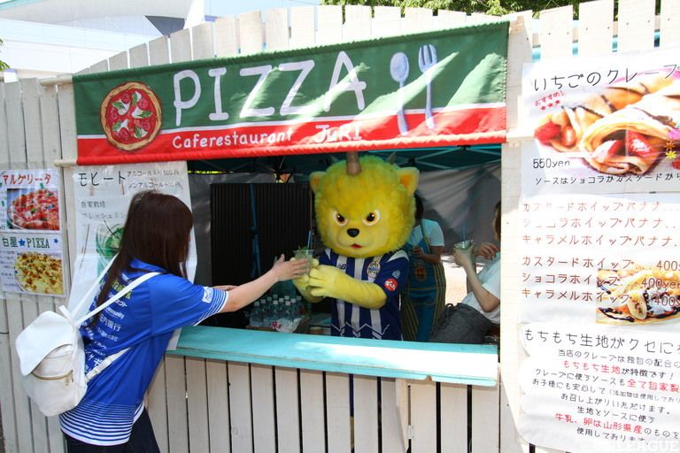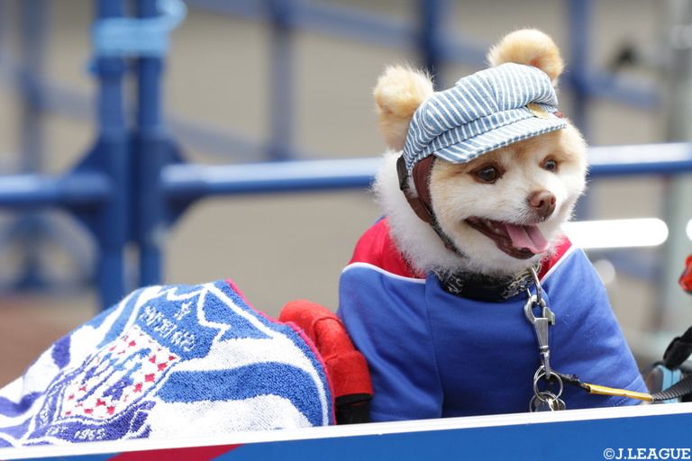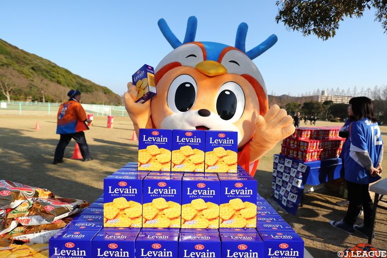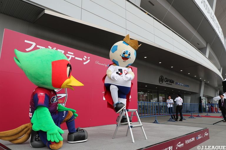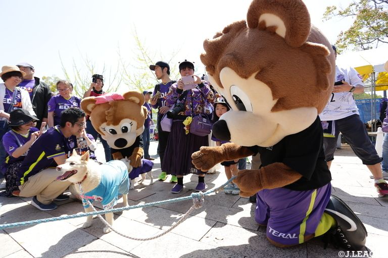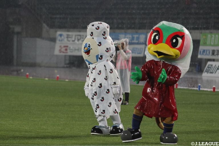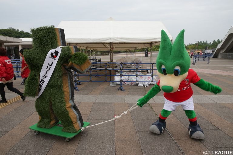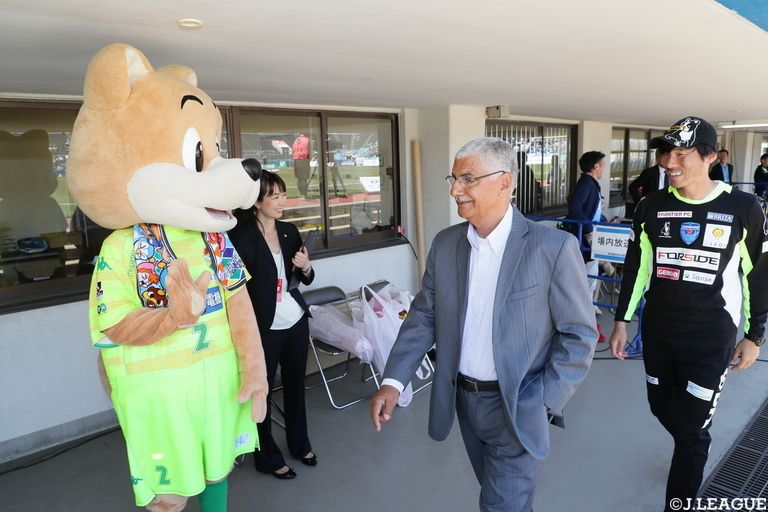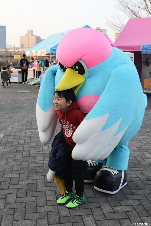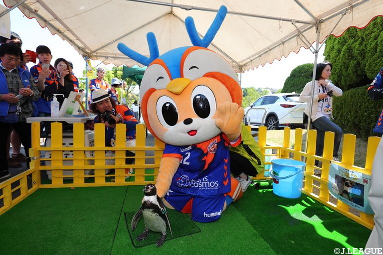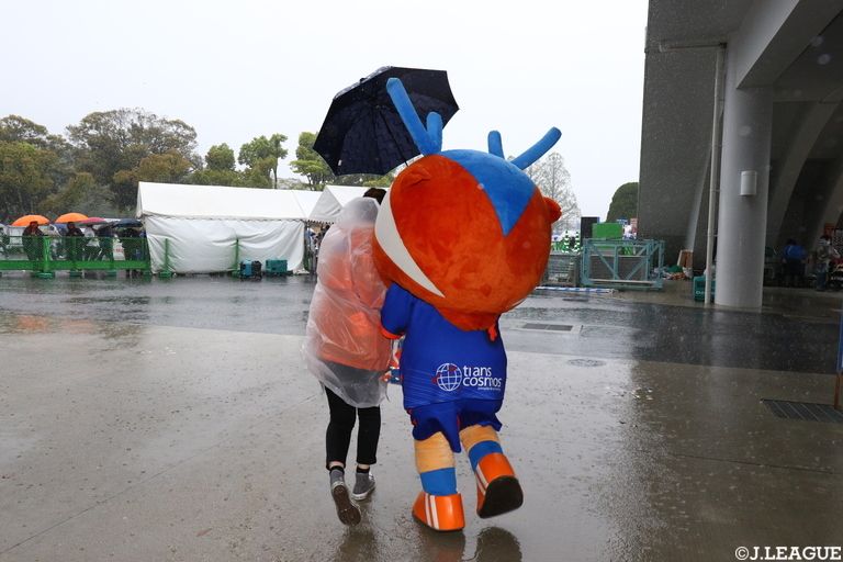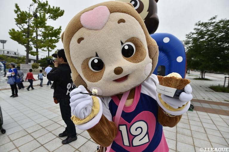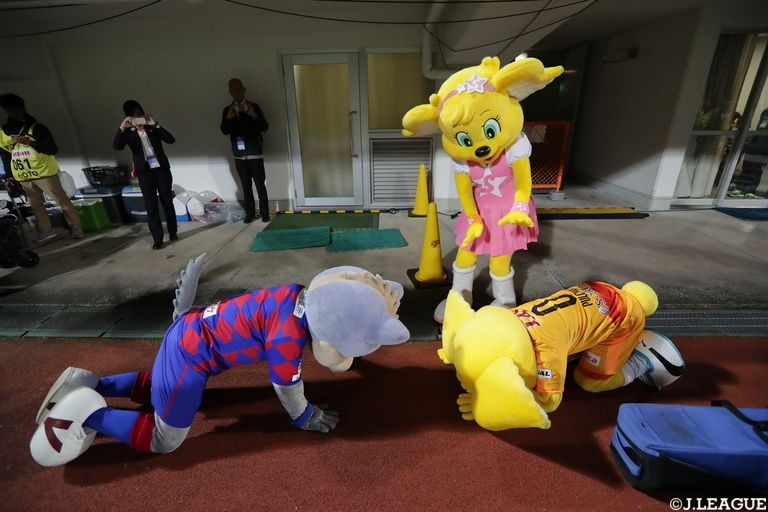 相手クラブとも分け隔てなく接する、まさに『マスコットの鏡』。