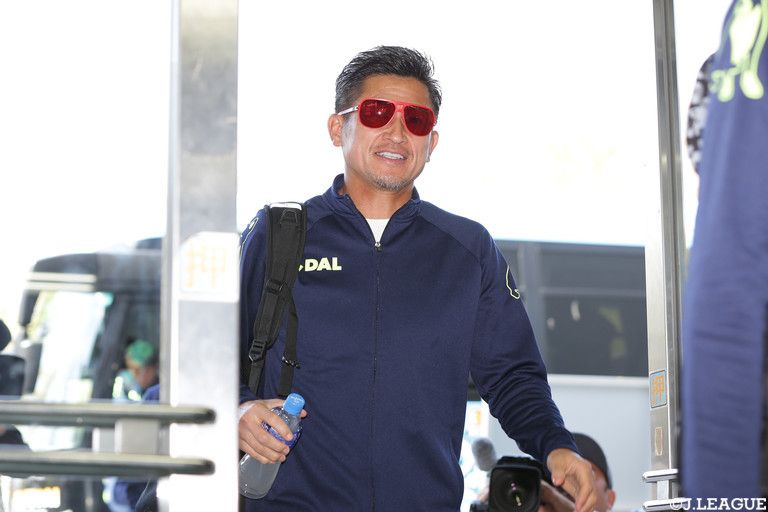 横浜FCのタヴァレス監督を出迎える、千葉のジェフィ。