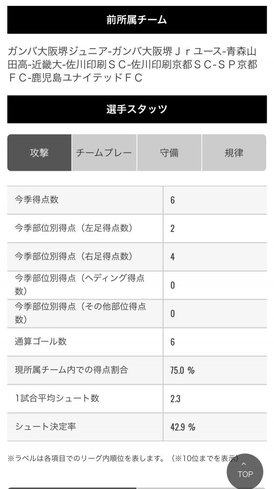 6試合で6ゴール決めている藤本選手の今後の活躍に期待です!