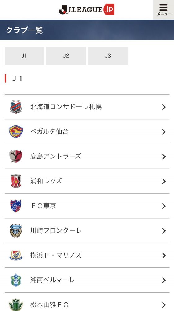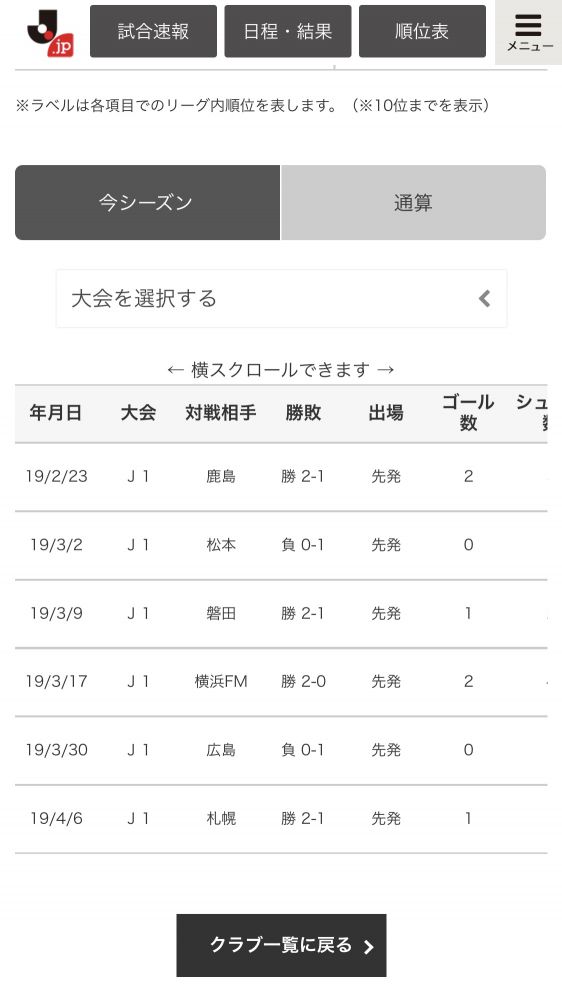 サイト内の「クラブ・選手」のページを開き、気になるクラブをクリックしてみよう♫