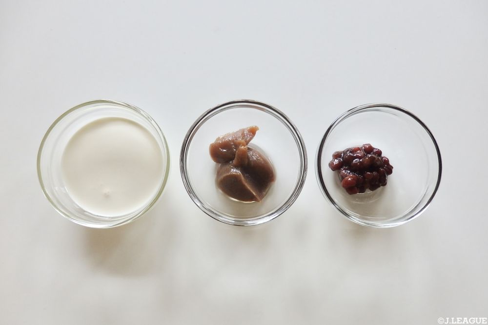 マロンクリーム、ゆであずき、生クリームを用意します。