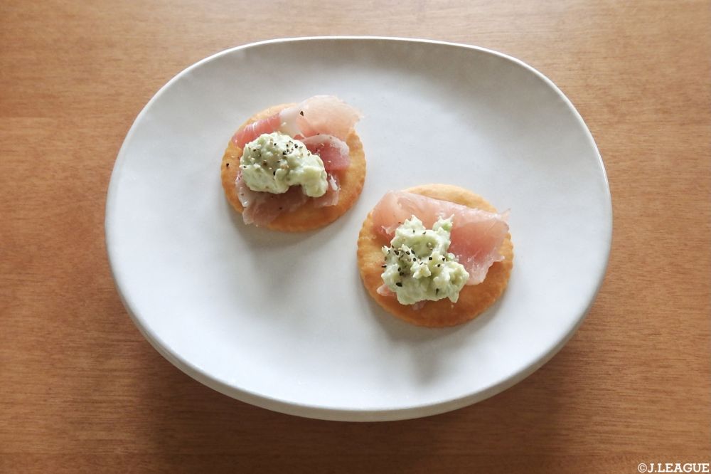 最初に紹介するのはヴァンフォーレ甲府の「生ハム&アボガドクリーム オンザ ルヴァンプライムスナック」!