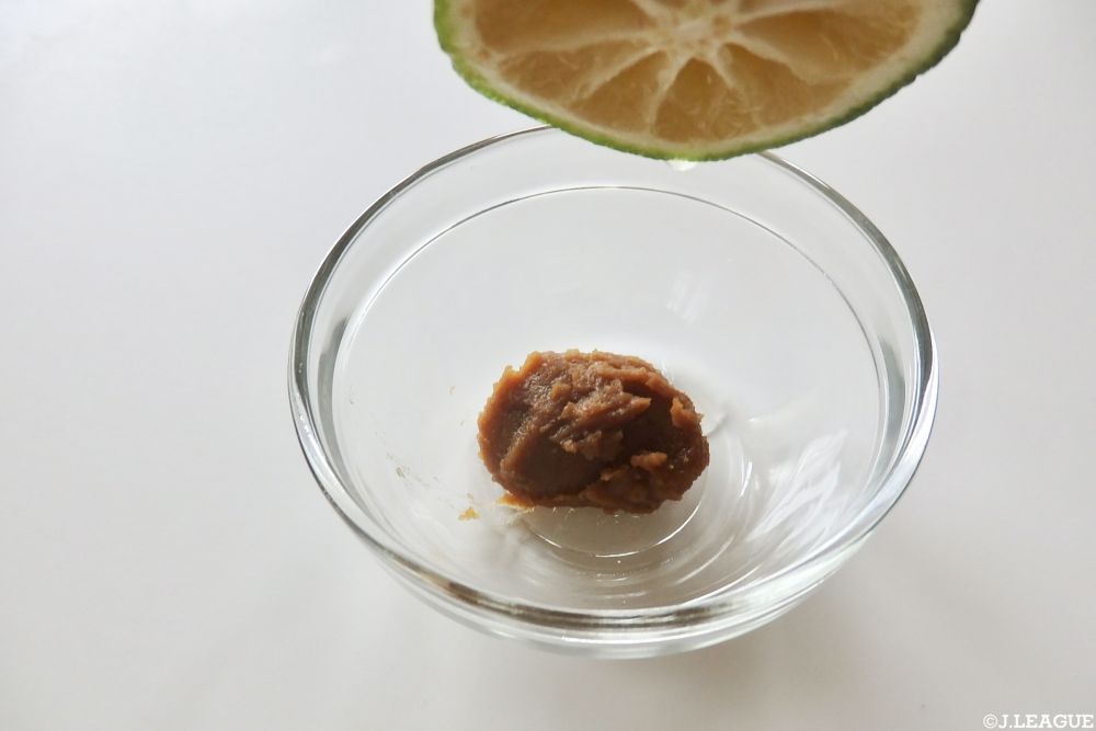 みそにかぼすの果汁と砂糖を加えて、オリジナルのかぼすみそを作りました(汗)