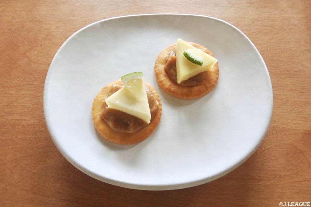 ルヴァンプライムにかぼすみそを塗ったら、その上にチーズをのせ、さらにかぼすを少量のせて出来上がり!!