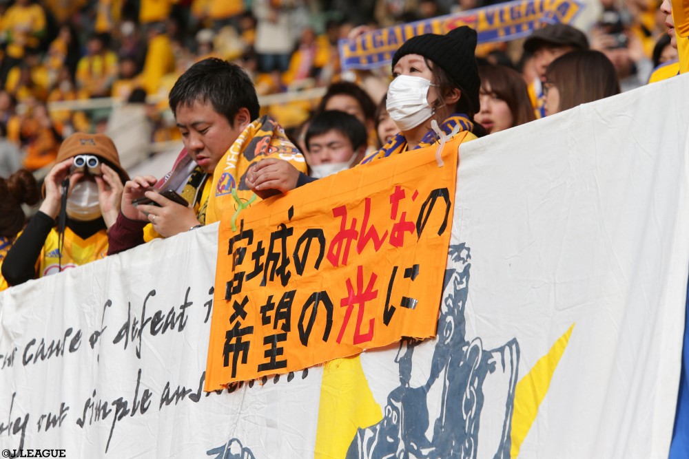 また、スタジアムではベガルタ仙台のサポーターが支援への感謝の意を込め、