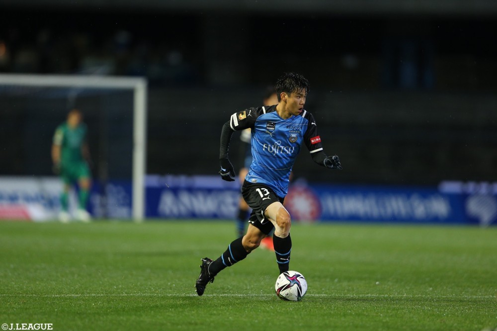 川崎Fでは右サイドバックに定着し、2021シーズン開幕戦では家長選手のゴールをアシストしました。
