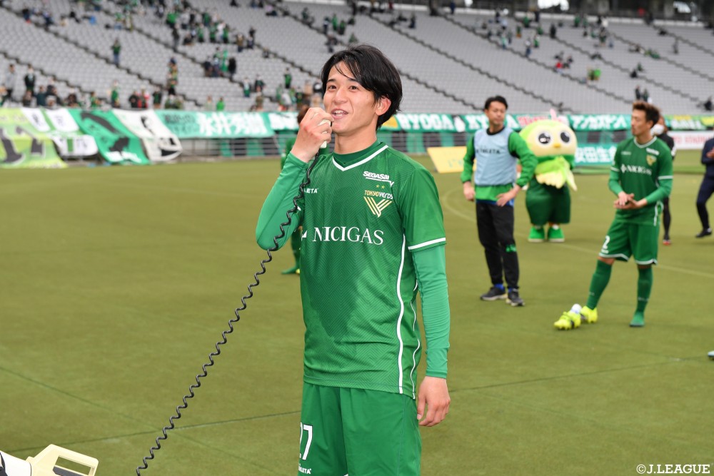 明治安田生命J2リーグ第4節では、関口選手のシュート性のボールを、高校の先輩である中村亮太朗選手がゴール!