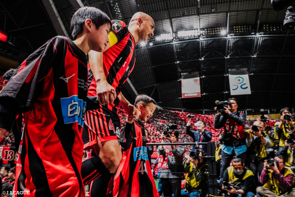 ベンチに下がる際には、3万人を超えるファン・サポーターの大きな拍手に包まれ、ピッチ上で選手たちが花道を作りました。