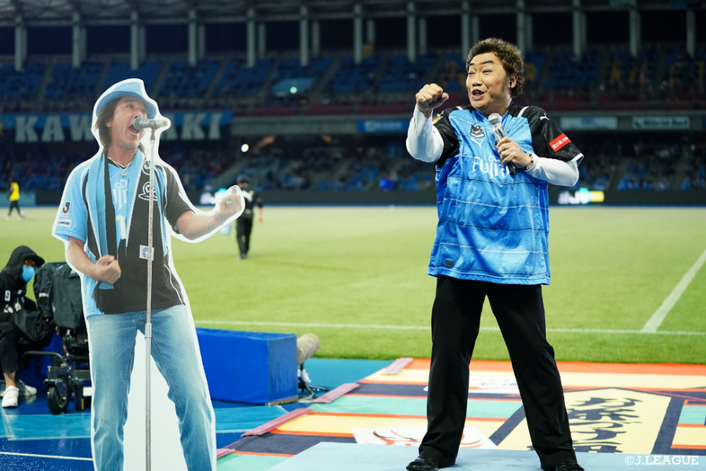 川崎フロンターレのホーム、等々力陸上競技場にはお笑いタレントのコロッケさんが来場し、