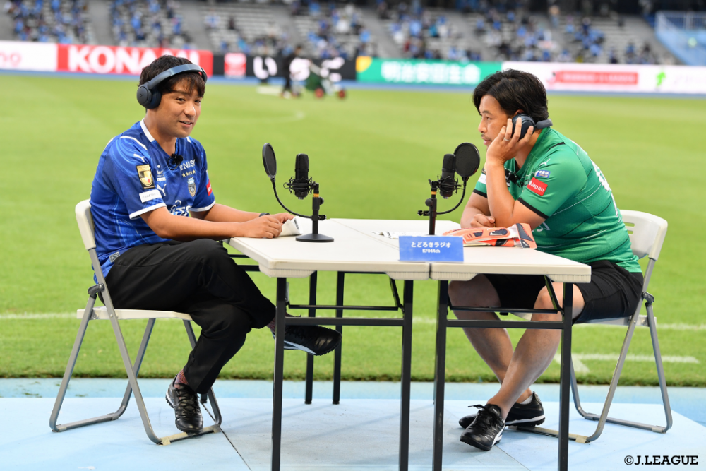等々力陸上競技場にアルコ&ピースの平子祐希さん、酒井健太さんが来場。