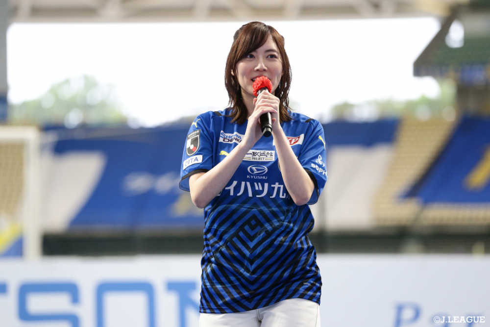 アビスパ福岡のホーム、ベスト電器スタジアムにはHKT48の豊永阿紀さんが来場!