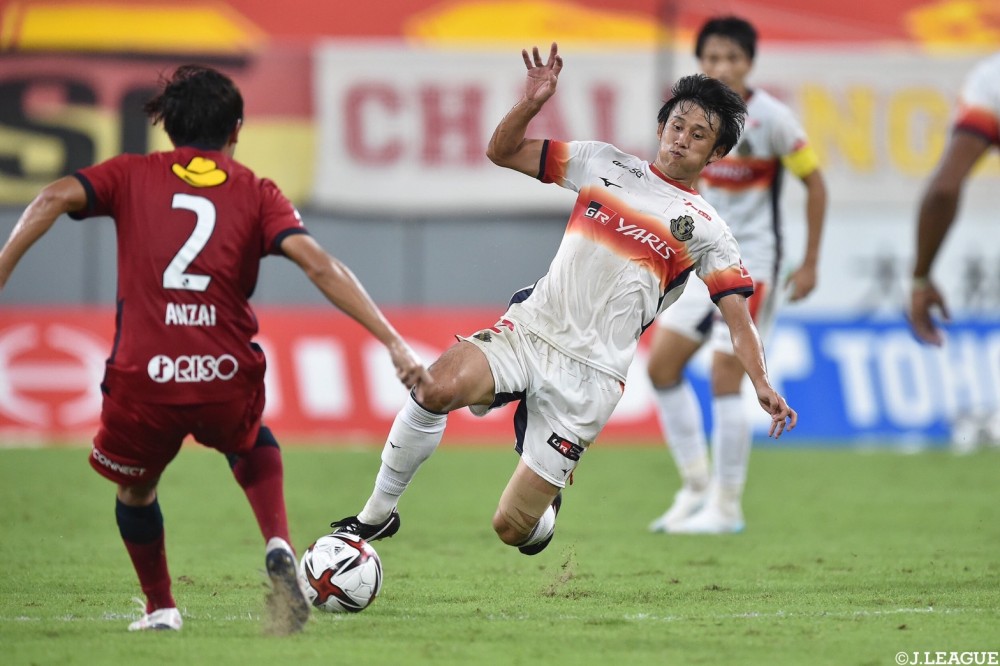 日体大から甲府、広島を経て2020年から名古屋に加入。米本選手、長澤選手とともに中盤を駆け回るエネルギッシュなミッドフィルダーです。