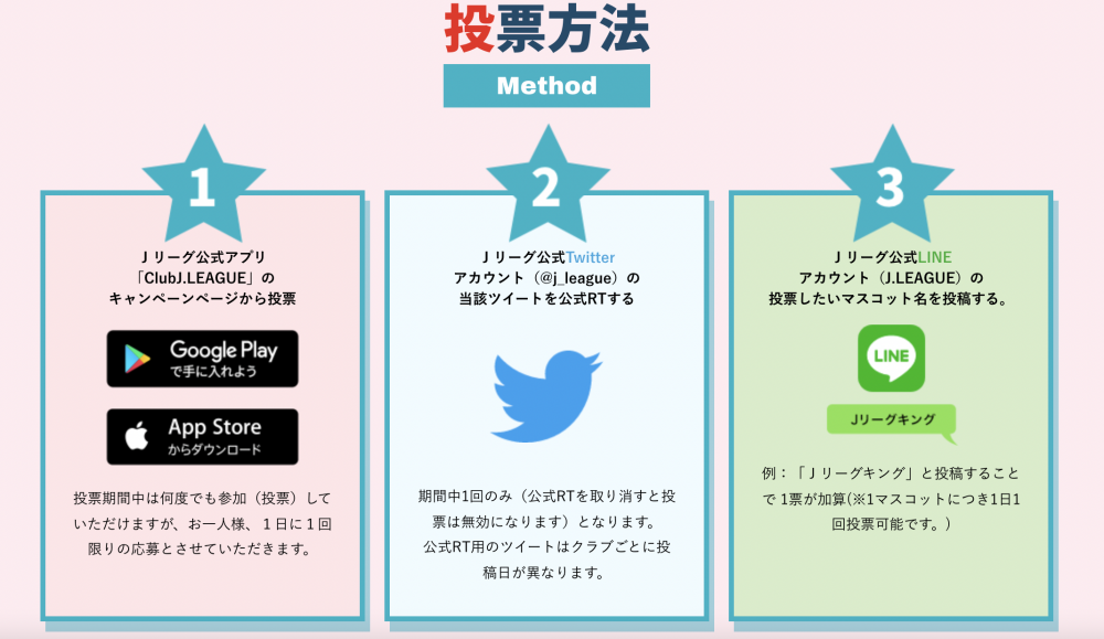 ①Jリーグ公式アプリ「ClubJ.LEAGUE」のキャンペーンページから投票