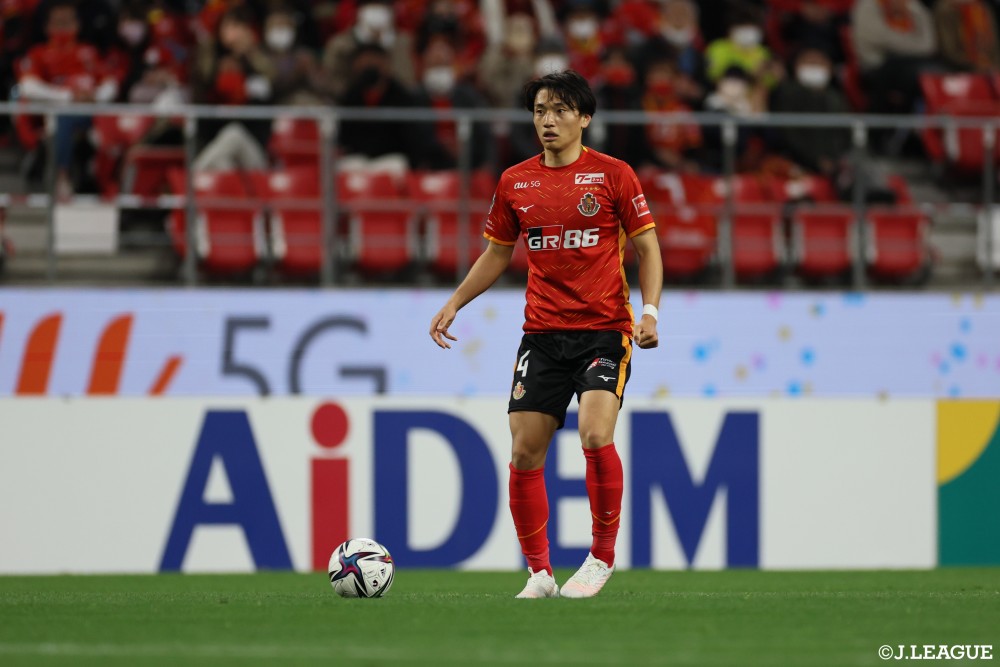 気迫あふれるプレーでチームを鼓舞する、名古屋グランパスの中谷 進之介選手。