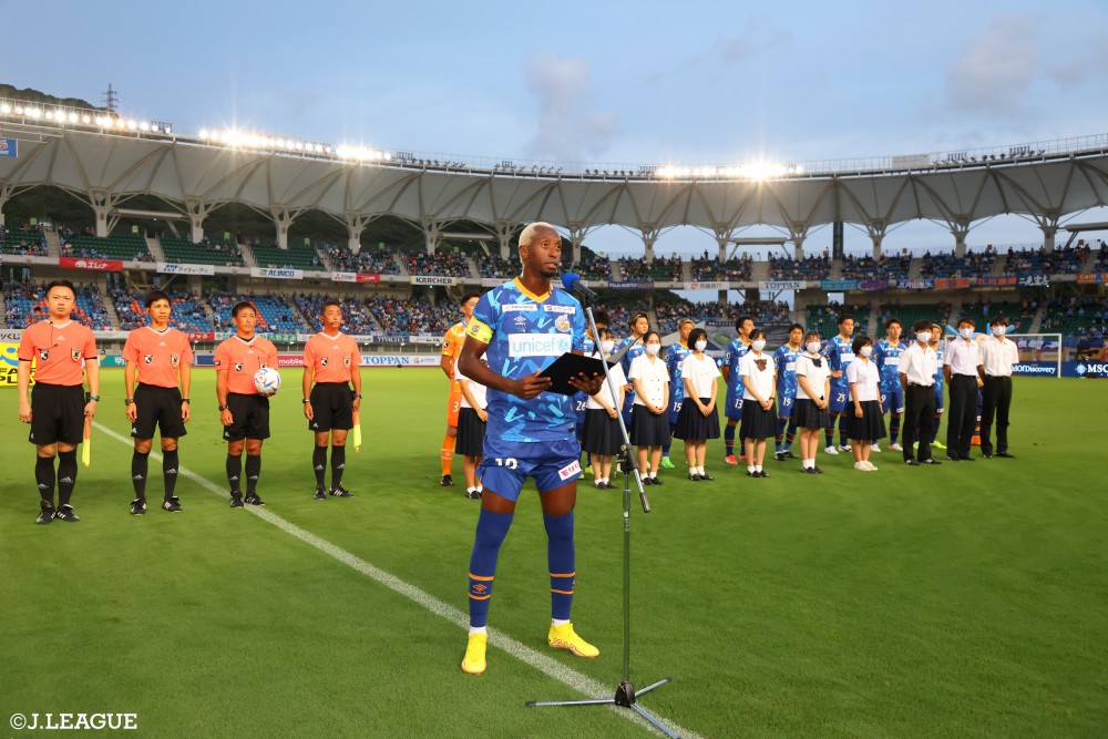 平和祈念ユニフォーム着用初戦の岩手戦にて、エジガルジュニオ選手が「平和祈念像」のゴールパフォーマンスをしました。