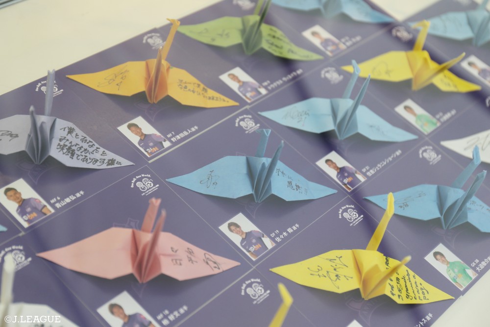 サンフレッチェ広島の選手、サンフレッチェ広島レジーナの選手も想いを込めて折鶴を折っております。